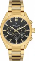 Мужские наручные часы Daniel Klein Exclusive 14064-5. Точный кварцевый механизм с аналоговой индикацией. В отличие от механических часов, не требуют завода и работают от батареи, показывая отклонение всего несколько секунд в месяц. На стрелки и отметки нанесен светонакопительный состав, благодаря этому считывать информацию с циферблата возможно и в темноте. Браслет из нержавеющей стали обладает высокой прочностью и износостойкостью, обеспечивая долговечность даже при активной эксплуатации. Материал устойчив к коррозии и сохраняет свой внешний вид надолго. Отображение времени возможно в 12-часовом или 24-часовом формате. Корпус изготовлен из высококачественной часовой латуни с высокими антикоррозийными свойствами. Прочное, устойчивое к царапинам минеральное стекло защищает часы от повреждений. Часы являются водонепроницаемыми до 5 Бар. Цвет корпуса: Желтое золото. Цвет циферблата: Черный. Высота (с ушками): 51 мм. Толщина: 12 мм. Гарантия: 1 год.
