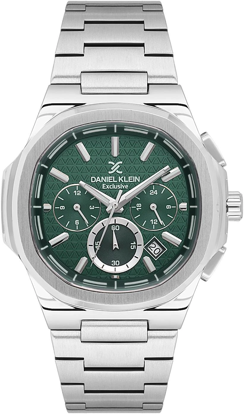 Мужские наручные часы Daniel Klein Exclusive 14082-4. Точный кварцевый механизм с аналоговой индикацией. В отличие от механических часов, не требуют завода и работают от батареи, показывая отклонение всего несколько секунд в месяц. На стрелки и отметки нанесен светонакопительный состав, благодаря этому считывать информацию с циферблата возможно и в темноте. Браслет из нержавеющей стали обладает высокой прочностью и износостойкостью, обеспечивая долговечность даже при активной эксплуатации. Материал устойчив к коррозии и сохраняет свой внешний вид надолго. Функция хронографа. Отображение времени возможно в 12-часовом или 24-часовом формате. Корпус изготовлен из высококачественной часовой латуни с высокими антикоррозийными свойствами. Прочное, устойчивое к царапинам минеральное стекло защищает часы от повреждений. Часы являются водонепроницаемыми до 5 Бар. Цвет корпуса: Серебристый. Цвет циферблата: Зеленый. Высота (с ушками): 49 мм. Толщина: 13 мм. Гарантия: 1 год.