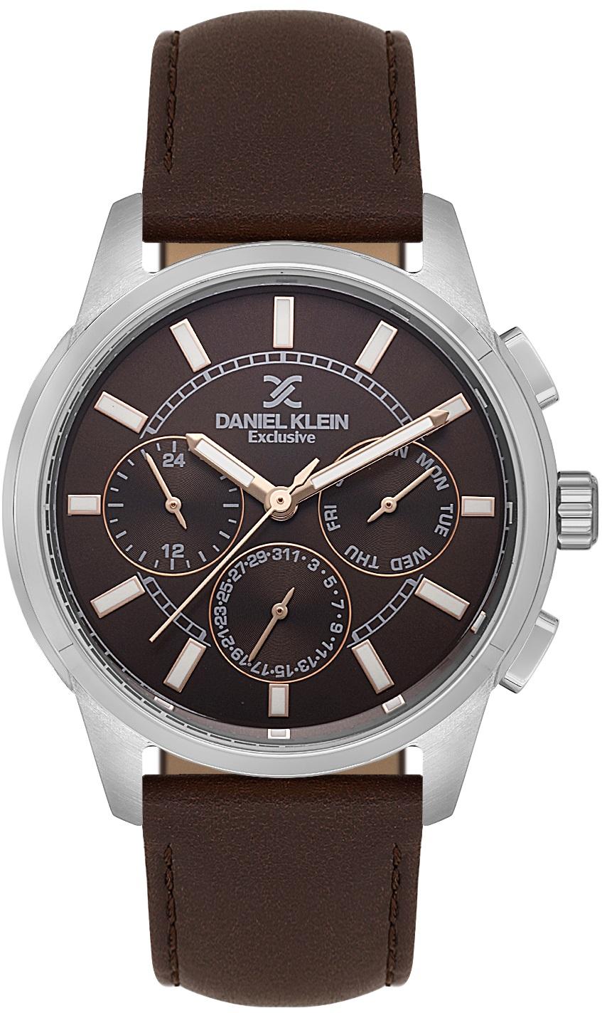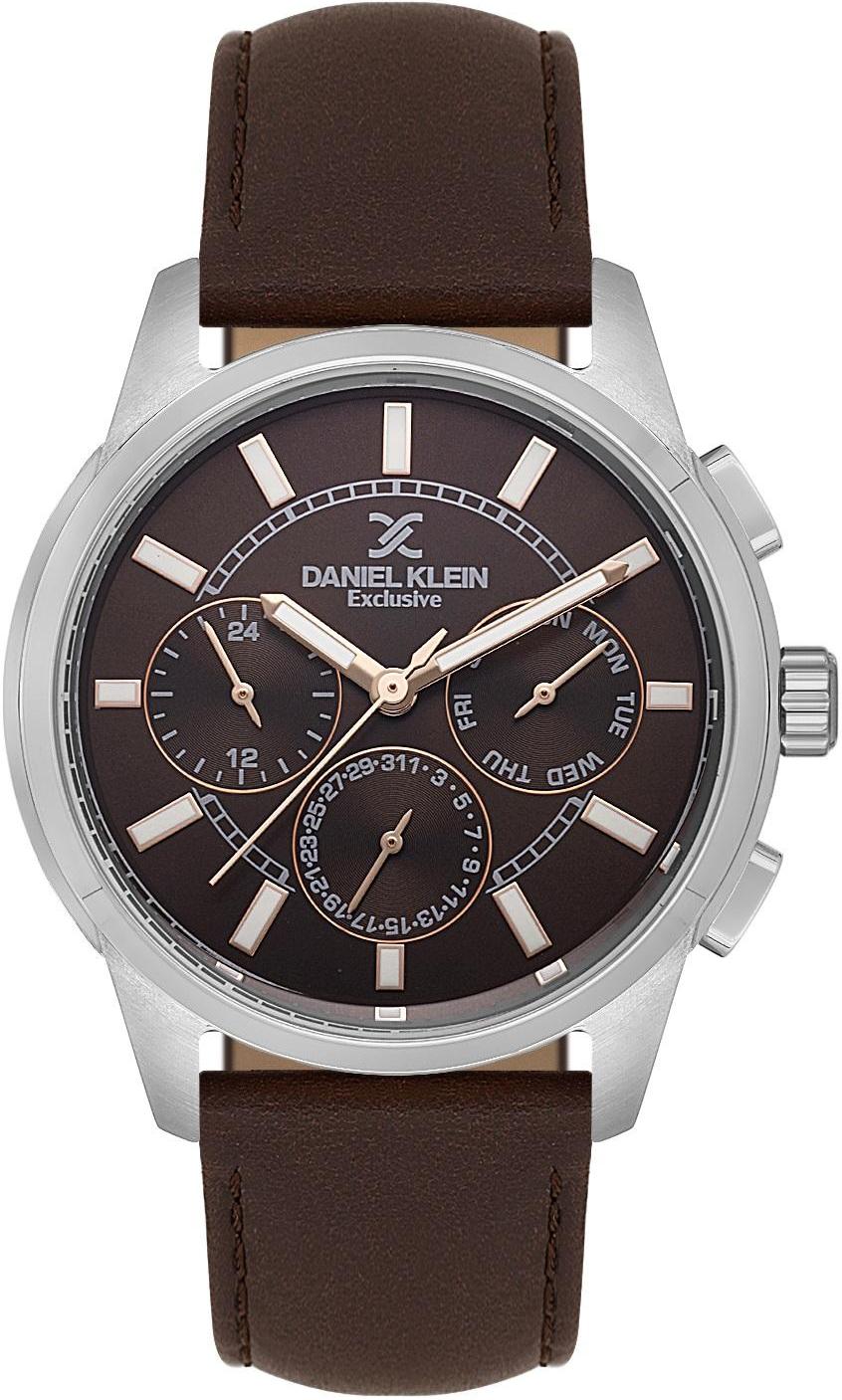 Мужские наручные часы Daniel Klein Exclusive 14209-4. Точный кварцевый механизм с аналоговой индикацией. В отличие от механических часов, не требуют завода и работают от батареи, показывая отклонение всего несколько секунд в месяц. Ремешок изготовлен из кожи. Гибкость такого ремешка позволяет точно регулировать посадку часов на руке. Отображение времени возможно в 12-часовом или 24-часовом формате. Корпус изготовлен из высококачественной часовой латуни с высокими антикоррозийными свойствами. Прочное, устойчивое к царапинам минеральное стекло защищает часы от повреждений. Часы являются водонепроницаемыми до 5 Бар. Цвет корпуса: Серебристый. Цвет циферблата: Коричневый. Высота (с ушками): 44 мм. Гарантия: 1 год.