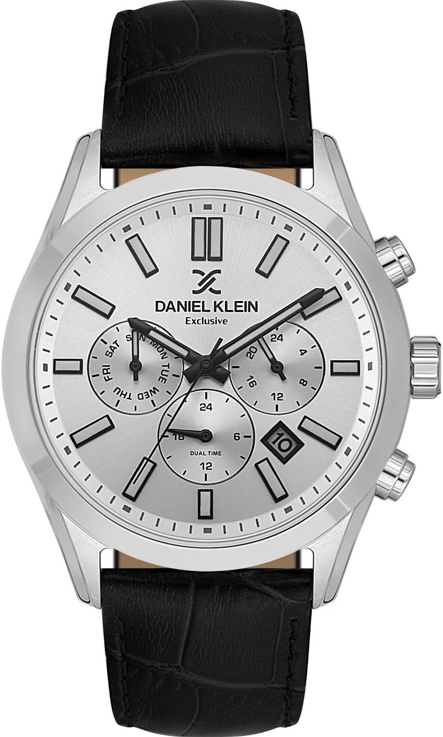 Мужские наручные часы Daniel Klein Exclusive 14212-1. Точный кварцевый механизм с аналоговой индикацией. В отличие от механических часов, не требуют завода и работают от батареи, показывая отклонение всего несколько секунд в месяц. Ремешок изготовлен из кожи. Гибкость такого ремешка позволяет точно регулировать посадку часов на руке. Отображение времени возможно в 12-часовом или 24-часовом формате. Корпус изготовлен из высококачественной часовой латуни с высокими антикоррозийными свойствами. Прочное, устойчивое к царапинам минеральное стекло защищает часы от повреждений. Часы являются водонепроницаемыми до 5 Бар. Цвет корпуса: Серебристый. Цвет циферблата: Серебристый. Высота (с ушками): 43 мм. Гарантия: 1 год.