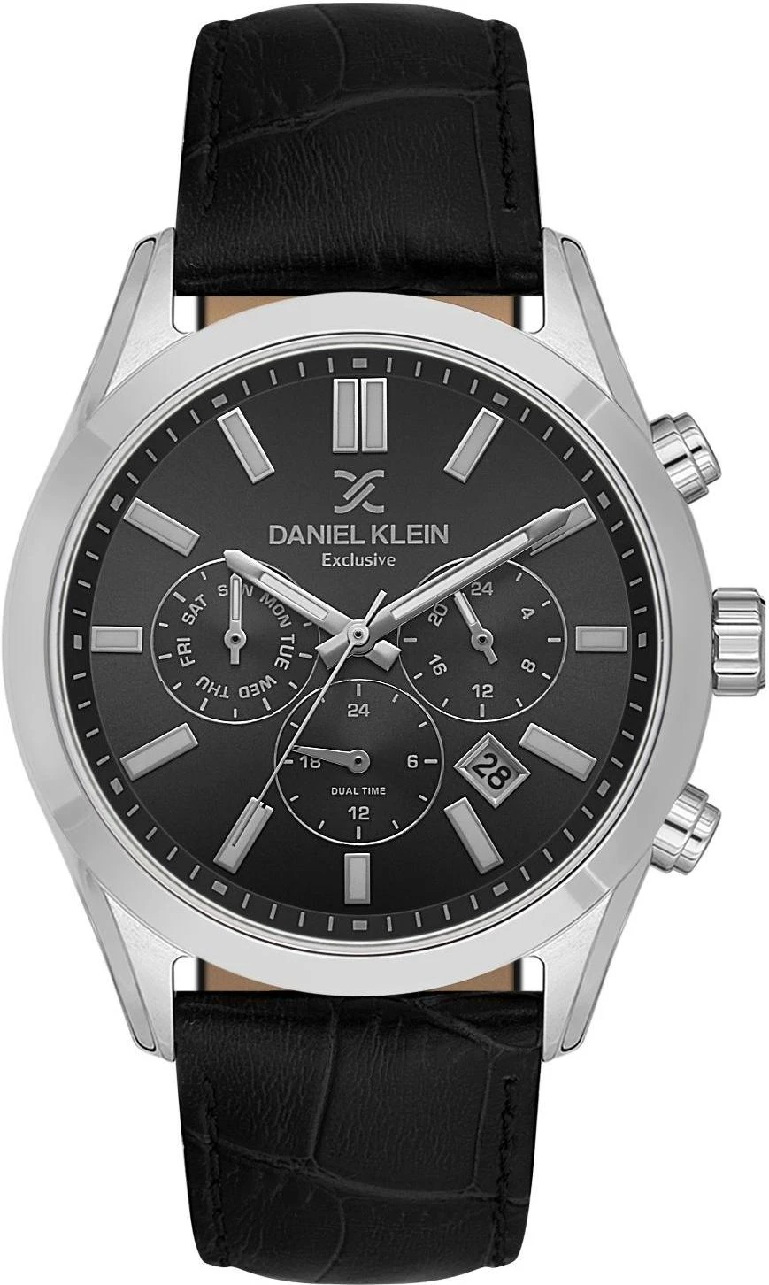 Мужские наручные часы Daniel Klein Exclusive 14212-2. Точный кварцевый механизм с аналоговой индикацией. В отличие от механических часов, не требуют завода и работают от батареи, показывая отклонение всего несколько секунд в месяц. Ремешок изготовлен из кожи. Гибкость такого ремешка позволяет точно регулировать посадку часов на руке. Отображение времени возможно в 12-часовом или 24-часовом формате. Корпус изготовлен из высококачественной часовой латуни с высокими антикоррозийными свойствами. Прочное, устойчивое к царапинам минеральное стекло защищает часы от повреждений. Часы являются водонепроницаемыми до 5 Бар. Цвет корпуса: Серебристый. Цвет циферблата: Черный. Высота (с ушками): 43 мм. Гарантия: 1 год.
