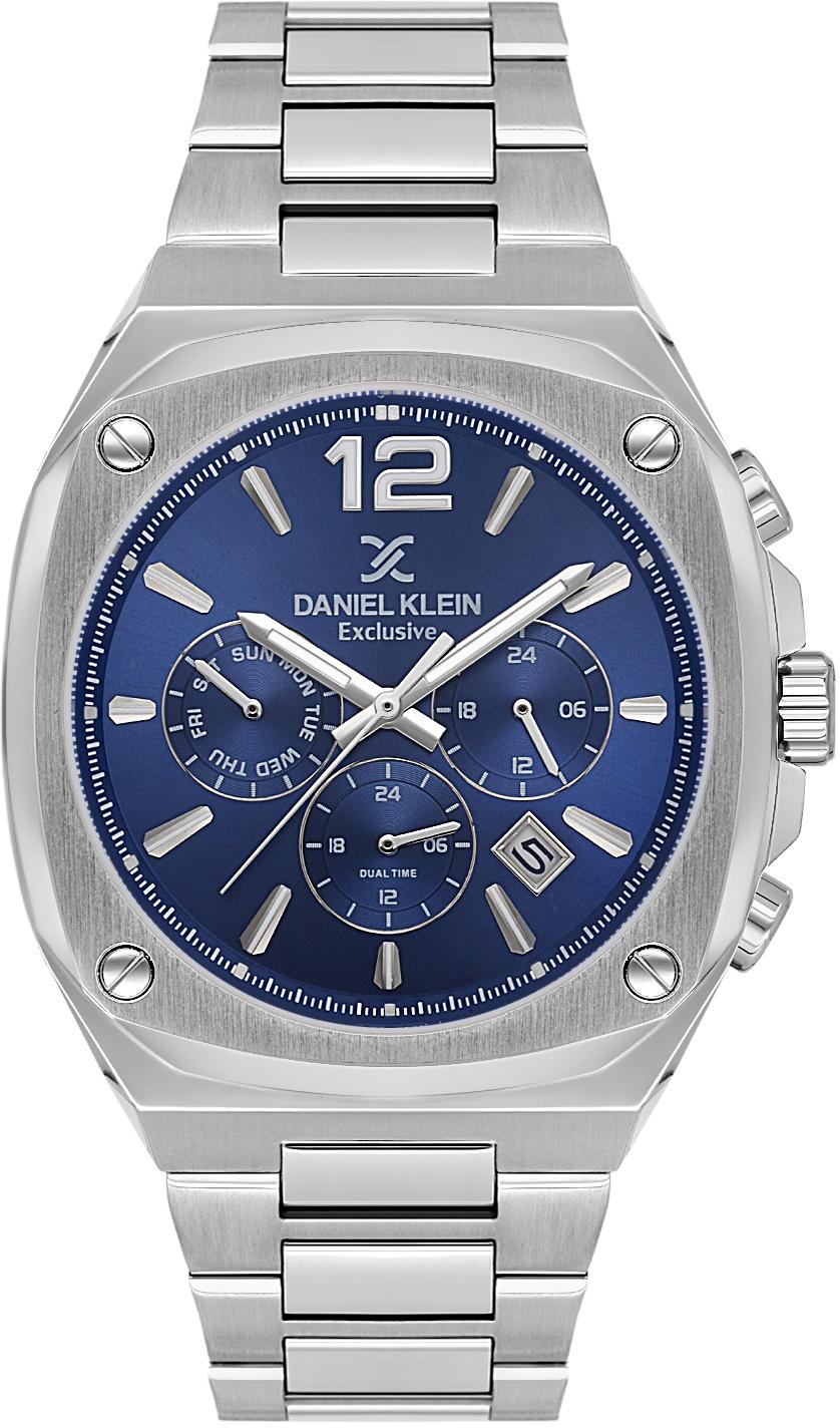 Мужские наручные часы Daniel Klein Exclusive 14215-3. Точный кварцевый механизм с аналоговой индикацией. В отличие от механических часов, не требуют завода и работают от батареи, показывая отклонение всего несколько секунд в месяц. Браслет из нержавеющей стали обладает высокой прочностью и износостойкостью, обеспечивая долговечность даже при активной эксплуатации. Материал устойчив к коррозии и сохраняет свой внешний вид надолго. Отображение времени возможно в 12-часовом или 24-часовом формате. Корпус изготовлен из высококачественной часовой латуни с высокими антикоррозийными свойствами. Прочное, устойчивое к царапинам минеральное стекло защищает часы от повреждений. Часы являются водонепроницаемыми до 5 Бар. Цвет корпуса: Серебристый. Цвет циферблата: Синий. Высота (с ушками): 42 мм. Гарантия: 1 год.