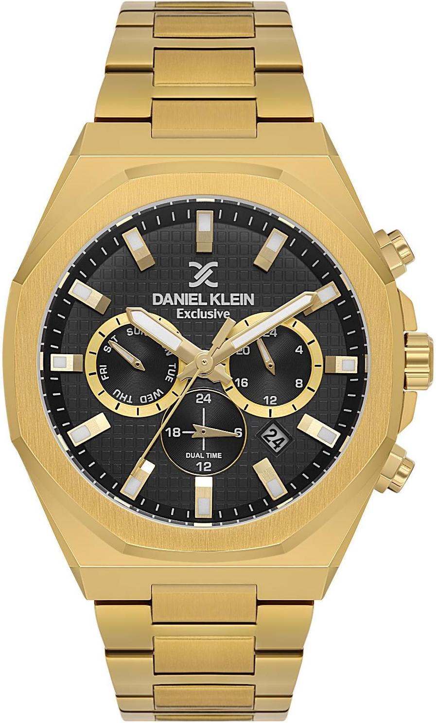 Мужские наручные часы Daniel Klein Exclusive 14218-4. Точный кварцевый механизм с аналоговой индикацией. В отличие от механических часов, не требуют завода и работают от батареи, показывая отклонение всего несколько секунд в месяц. Браслет из нержавеющей стали обладает высокой прочностью и износостойкостью, обеспечивая долговечность даже при активной эксплуатации. Материал устойчив к коррозии и сохраняет свой внешний вид надолго. Отображение времени возможно в 12-часовом или 24-часовом формате. Корпус изготовлен из высококачественной часовой латуни с высокими антикоррозийными свойствами. Прочное, устойчивое к царапинам минеральное стекло защищает часы от повреждений. Часы являются водонепроницаемыми до 5 Бар. Цвет корпуса: Желтое золото. Цвет циферблата: Черный. Высота (с ушками): 44 мм. Гарантия: 1 год.
