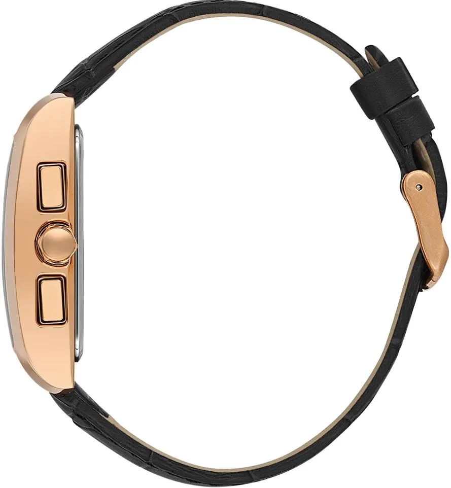 . Точный кварцевый механизм с аналоговой индикацией. В отличие от механических часов, не требуют завода и работают от батареи, показывая отклонение всего несколько секунд в месяц. На стрелки и отметки нанесен светонакопительный состав, благодаря этому считывать информацию с циферблата возможно и в темноте.Ремешок изготовлен из кожи. Гибкость такого ремешка позволяет точно регулировать посадку часов на руке. Отображение времени возможно в 12-часовом или 24-часовом формате. Корпус изготовлен из высококачественной часовой латуни с высокими антикоррозийными свойствами. Прочное, устойчивое к царапинам минеральное стекло защищает часы от повреждений. Часы являются водонепроницаемыми до 5 Бар. Цвет корпуса: Розовое золото. Цвет циферблата: Черный. Высота (с ушками): 46 мм. Толщина: 13 мм. Гарантия: 1 год.