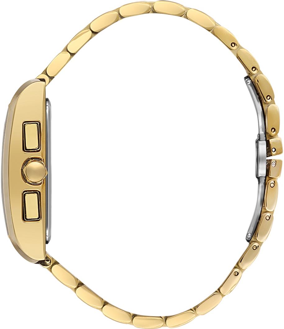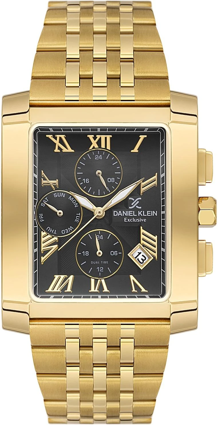 . Точный кварцевый механизм с аналоговой индикацией. В отличие от механических часов, не требуют завода и работают от батареи, показывая отклонение всего несколько секунд в месяц. На стрелки и отметки нанесен светонакопительный состав, благодаря этому считывать информацию с циферблата возможно и в темноте.Браслет из нержавеющей стали обладает высокой прочностью и износостойкостью, обеспечивая долговечность даже при активной эксплуатации. Материал устойчив к коррозии и сохраняет свой внешний вид надолго. Отображение времени возможно в 12-часовом или 24-часовом формате. Корпус изготовлен из высококачественной часовой латуни с высокими антикоррозийными свойствами. Прочное, устойчивое к царапинам минеральное стекло защищает часы от повреждений. Часы являются водонепроницаемыми до 5 Бар. Цвет корпуса: Желтое золото. Цвет циферблата: Черный. Высота (с ушками): 46 мм. Толщина: 13 мм. Гарантия: 1 год.