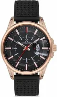 Мужские наручные часы Daniel Klein Premium 12752-2. Точный кварцевый механизм с аналоговой индикацией. Корпус изготовлен из высококачественной нержавеющей стали 316L с высокими антикоррозийными свойствами. На стрелки и отметки нанесен светонакопительный состав, благодаря этому считывать информацию с циферблата возможно и в темноте. На циферблате отображается текущее число месяца. Ремешок изготовлен из каучука. Прочное, устойчивое к царапинам минеральное стекло защищает часы от повреждений. Часы являются водонепроницаемыми до 5 Бар. Цвет корпуса: Розовое золото. Цвет циферблата: Черный. Гарантия: 1 год.