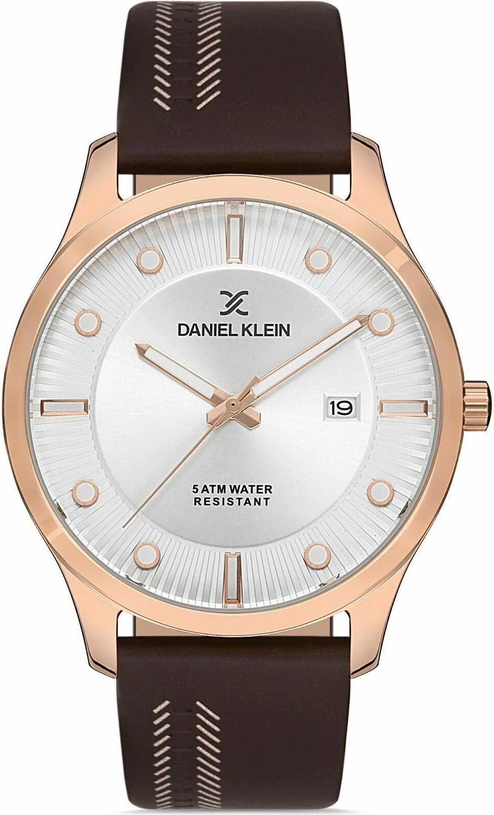 Мужские наручные часы Daniel Klein Premium 12986-3. Точный кварцевый механизм с аналоговой индикацией. Корпус изготовлен из высококачественной нержавеющей стали 316L с высокими антикоррозийными свойствами. На стрелки и отметки нанесен светонакопительный состав, благодаря этому считывать информацию с циферблата возможно и в темноте. На циферблате отображается текущее число месяца. Ремешок изготовлен из кожи. Прочное, устойчивое к царапинам минеральное стекло защищает часы от повреждений. Часы являются водонепроницаемыми до 5 Бар. Цвет корпуса: Розовое золото. Цвет циферблата: Серебристый. Ширина (с заводной головкой): 44мм. Толщина: 11мм. Гарантия: 1 год.