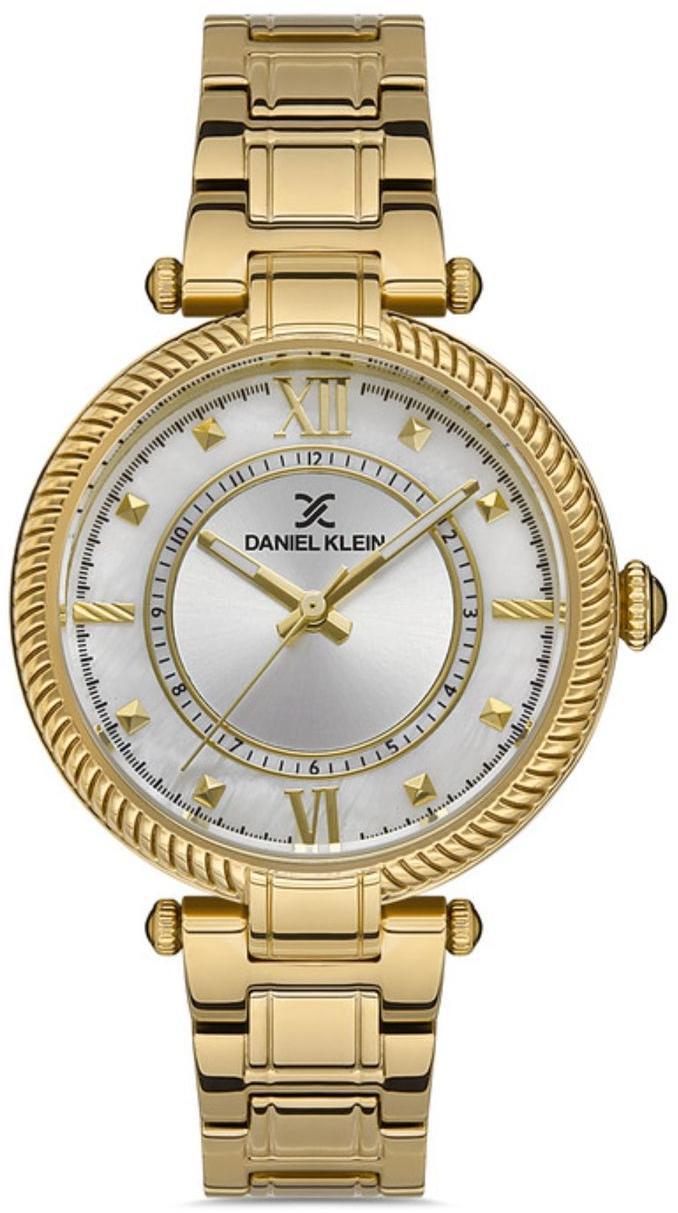 Женские наручные часы Daniel Klein Premium 13213-5. Точный кварцевый механизм с аналоговой индикацией. Корпус изготовлен из высококачественной нержавеющей стали 316L с высокими антикоррозийными свойствами. На стрелки и отметки нанесен светонакопительный состав, благодаря этому считывать информацию с циферблата возможно и в темноте. Браслет из нержавеющей стали. Прочное, устойчивое к царапинам минеральное стекло защищает часы от повреждений. Часы являются водонепроницаемыми до 3 Бар. Цвет корпуса: Желтое золото. Цвет циферблата: Серебристый. Ширина (с заводной головкой): 36мм. Толщина: 5мм. Гарантия: 1 год.