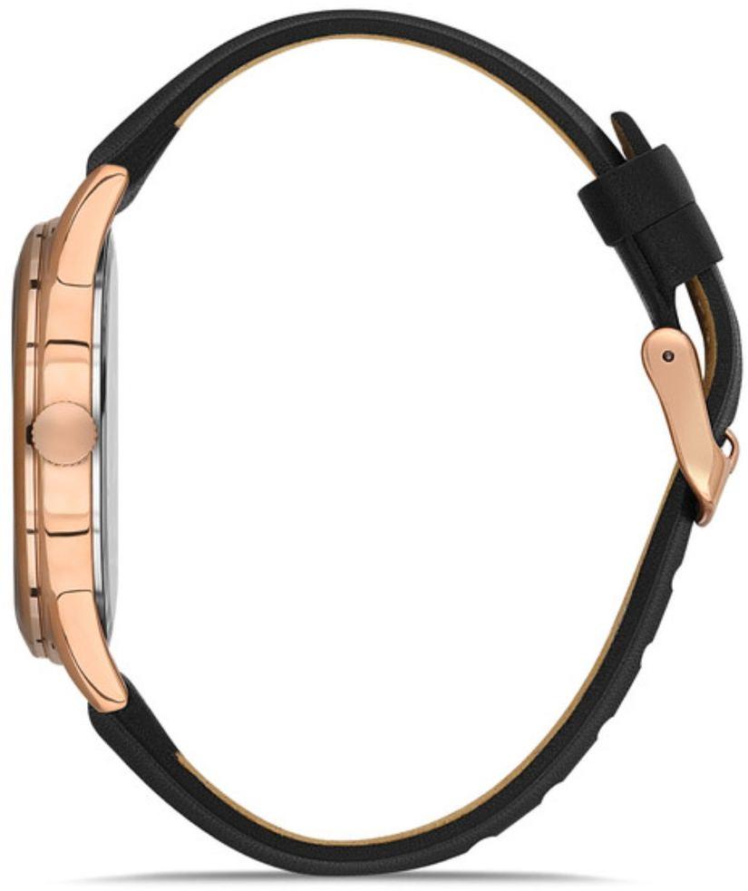 Мужские наручные часы Daniel Klein Premium 13312-4. Точный кварцевый механизм с аналоговой индикацией. Корпус изготовлен из высококачественной нержавеющей стали 316L с высокими антикоррозийными свойствами. На стрелки и отметки нанесен светонакопительный состав, благодаря этому считывать информацию с циферблата возможно и в темноте. На циферблате отображается текущее число месяца. Ремешок изготовлен из кожи. Прочное, устойчивое к царапинам минеральное стекло защищает часы от повреждений. Часы являются водонепроницаемыми до 5 Бар. Цвет корпуса: Розовое золото. Цвет циферблата: Черный. Ширина (с заводной головкой): 42мм. Толщина: 10мм. Гарантия: 1 год.