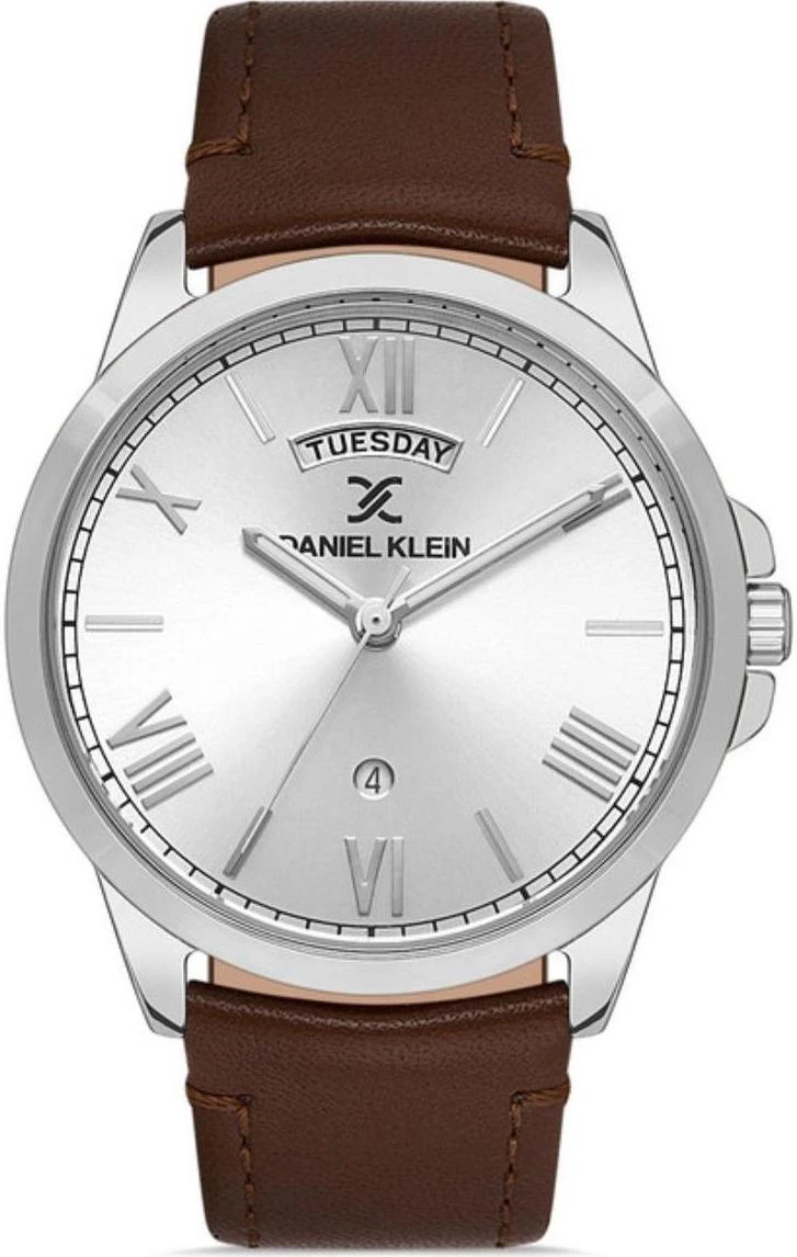 Мужские наручные часы Daniel Klein Premium 13325-1. Точный кварцевый механизм с аналоговой индикацией. Корпус изготовлен из высококачественной нержавеющей стали 316L с высокими антикоррозийными свойствами. На стрелки и отметки нанесен светонакопительный состав, благодаря этому считывать информацию с циферблата возможно и в темноте. На циферблате отображается текущее число месяца и день недели. Ремешок изготовлен из кожи. Прочное, устойчивое к царапинам минеральное стекло защищает часы от повреждений. Часы являются водонепроницаемыми до 3 Бар. Цвет корпуса: Серебристый. Цвет циферблата: Серебристый. Ширина (с заводной головкой): 43мм. Толщина: 11мм. Гарантия: 1 год.
