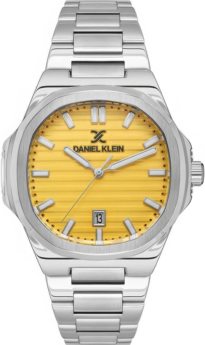 Мужские наручные часы Daniel Klein Premium 13648-5. Точный кварцевый механизм с аналоговой индикацией. Браслет из нержавеющей стали. Браслет из нержавеющей стали. Прочное, устойчивое к царапинам минеральное стекло защищает часы от повреждений. На циферблате отображается текущее число месяца. Часы являются водонепроницаемыми до 5 Бар. Цвет циферблата: Серебристый. Цвет корпуса: Желтый. На стрелки и отметки нанесен светонакопительный состав, благодаря этому считывать информацию с циферблата возможно и в темноте. Высота (с ушками): 44 мм. Толщина: 12 мм. Гарантия: 1 год.
