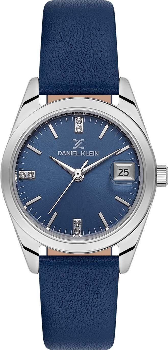 Женские наручные часы Daniel Klein Premium 13759-2. Точный кварцевый механизм с аналоговой индикацией. Ремешок изготовлен из кожи. После настройки автоматический календарь всегда отображает точную дату. Латунный браслет. Прочное, устойчивое к царапинам минеральное стекло защищает часы от повреждений. На циферблате отображается текущее число месяца. Часы являются водонепроницаемыми до 3 Бар. Цвет циферблата: Серебристый. Цвет корпуса: Синий. Толщина: 7 мм. Гарантия: 1 год.