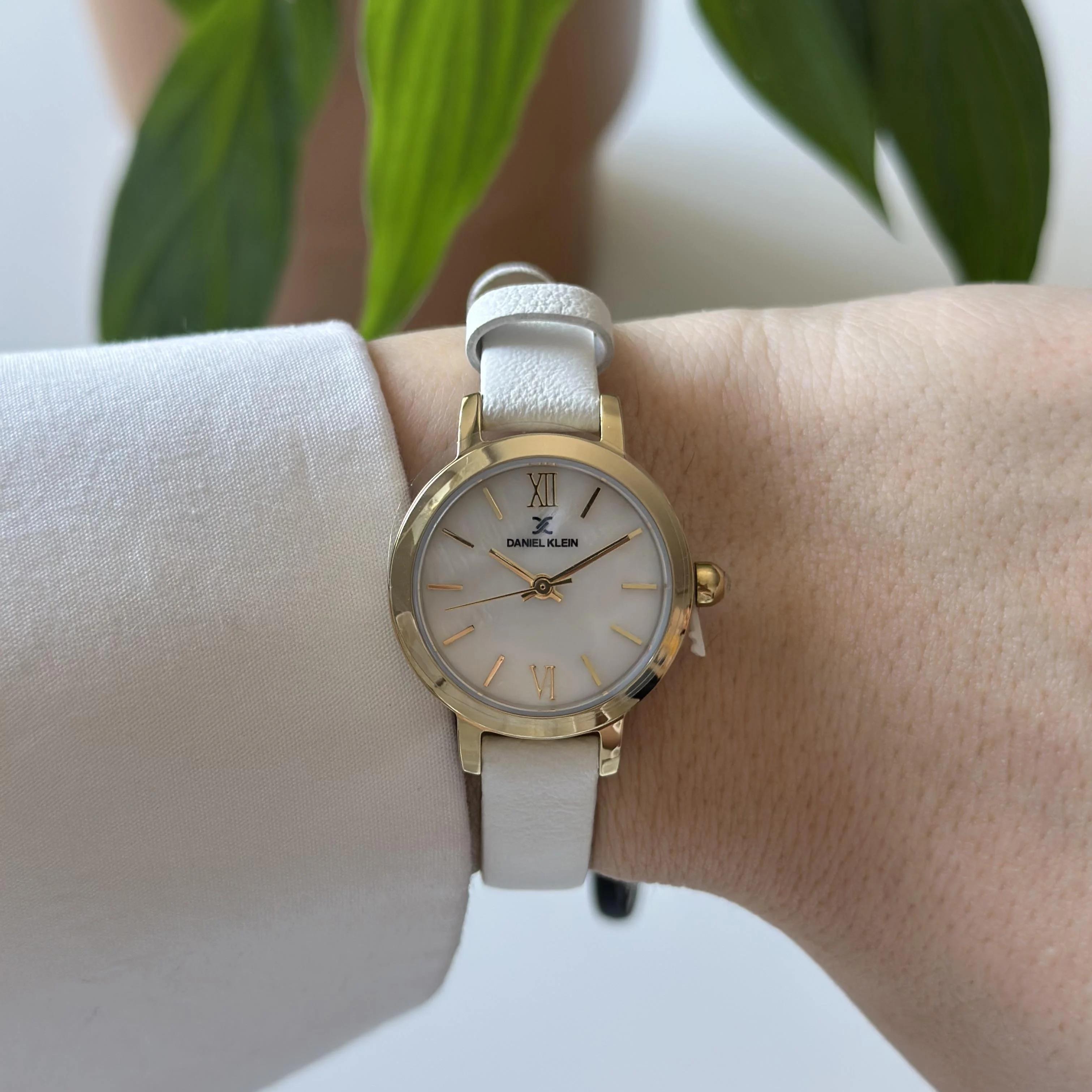 Женские наручные часы Daniel Klein Premium 13780-4. Точный кварцевый механизм с аналоговой индикацией. Ремешок изготовлен из кожи. Латунный браслет. Прочное, устойчивое к царапинам минеральное стекло защищает часы от повреждений. Часы являются водонепроницаемыми до 3 Бар. Цвет циферблата: Желтое золото. Цвет корпуса: Белый. Цвет корпуса: Перламутровый. Толщина: 7 мм. Гарантия: 1 год.