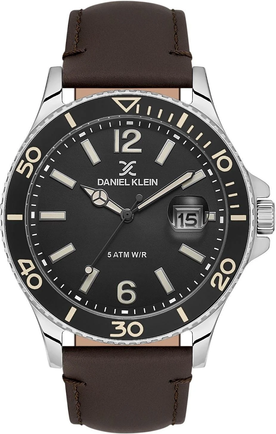 Мужские наручные часы Daniel Klein Premium 13905-5. Точный кварцевый механизм с аналоговой индикацией. В отличие от механических часов, не требуют завода и работают от батареи, показывая отклонение всего несколько секунд в месяц. На стрелки и отметки нанесен светонакопительный состав, благодаря этому считывать информацию с циферблата возможно и в темноте. Ремешок изготовлен из кожи. Гибкость такого ремешка позволяет точно регулировать посадку часов на руке. Корпус изготовлен из высококачественной часовой латуни с высокими антикоррозийными свойствами. Прочное, устойчивое к царапинам минеральное стекло защищает часы от повреждений. Часы являются водонепроницаемыми до 5 Бар. Цвет корпуса: Серебристый. Цвет циферблата: Черный. Высота (с ушками): 42 мм. Толщина: 12 мм. Гарантия: 1 год.