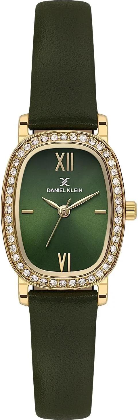 Женские наручные часы Daniel Klein Premium 13943-4. Точный кварцевый механизм с аналоговой индикацией. В отличие от механических часов, не требуют завода и работают от батареи, показывая отклонение всего несколько секунд в месяц. Ремешок изготовлен из кожи. Гибкость такого ремешка позволяет точно регулировать посадку часов на руке. Корпус изготовлен из высококачественной часовой латуни с высокими антикоррозийными свойствами. Прочное, устойчивое к царапинам минеральное стекло защищает часы от повреждений. Часы являются водонепроницаемыми до 3 Бар. Цвет корпуса: Желтое золото. Цвет циферблата: Зеленый. Высота (с ушками): 34.5 мм. Гарантия: 1 год.