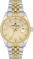 Мужские наручные часы Daniel Klein Premium 13985-5. Точный кварцевый механизм с аналоговой индикацией. В отличие от механических часов, не требуют завода и работают от батареи, показывая отклонение всего несколько секунд в месяц. На стрелки и отметки нанесен светонакопительный состав, благодаря этому считывать информацию с циферблата возможно и в темноте. Браслет из нержавеющей стали обладает высокой прочностью и износостойкостью, обеспечивая долговечность даже при активной эксплуатации. Материал устойчив к коррозии и сохраняет свой внешний вид надолго. Корпус изготовлен из высококачественной часовой латуни с высокими антикоррозийными свойствами. Прочное, устойчивое к царапинам минеральное стекло защищает часы от повреждений. Часы являются водонепроницаемыми до 5 Бар. Цвет корпуса: Серебристый. Цвет циферблата: Желтый. Высота (с ушками): 41 мм. Толщина: 13 мм. Гарантия: 1 год.