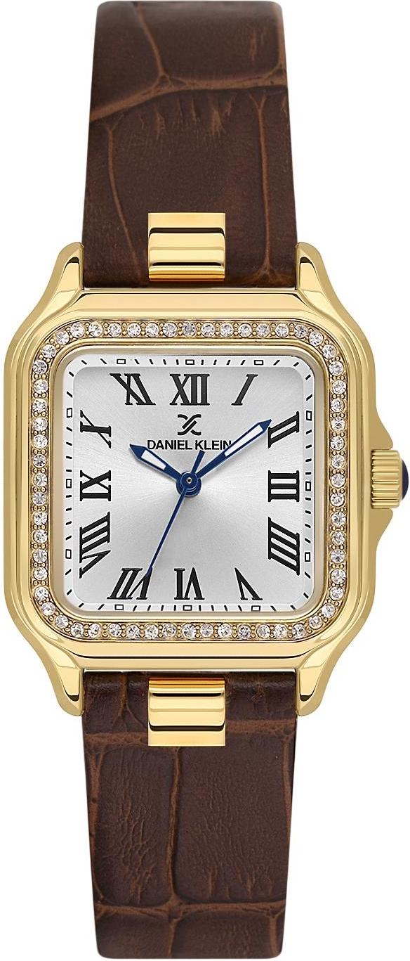 Женские наручные часы Daniel Klein Premium 14039-2. Точный кварцевый механизм с аналоговой индикацией. В отличие от механических часов, не требуют завода и работают от батареи, показывая отклонение всего несколько секунд в месяц. На стрелки и отметки нанесен светонакопительный состав, благодаря этому считывать информацию с циферблата возможно и в темноте. Ремешок изготовлен из кожи. Гибкость такого ремешка позволяет точно регулировать посадку часов на руке. Корпус изготовлен из высококачественной часовой латуни с высокими антикоррозийными свойствами. Прочное, устойчивое к царапинам минеральное стекло защищает часы от повреждений. Часы являются водонепроницаемыми до 3 Бар. Цвет корпуса: Желтое золото. Цвет циферблата: Серебристый. Высота (с ушками): 28 мм. Толщина: 9 мм. Гарантия: 1 год.