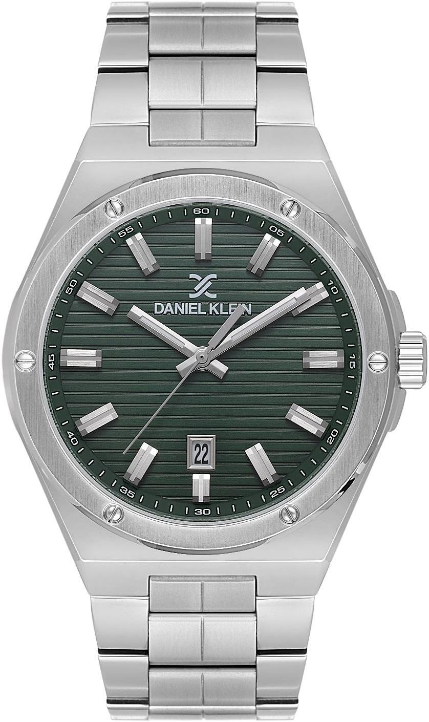 Мужские наручные часы Daniel Klein Premium 14073-4. Точный кварцевый механизм с аналоговой индикацией. В отличие от механических часов, не требуют завода и работают от батареи, показывая отклонение всего несколько секунд в месяц. На стрелки и отметки нанесен светонакопительный состав, благодаря этому считывать информацию с циферблата возможно и в темноте. Браслет из нержавеющей стали обладает высокой прочностью и износостойкостью, обеспечивая долговечность даже при активной эксплуатации. Материал устойчив к коррозии и сохраняет свой внешний вид надолго. Корпус изготовлен из высококачественной часовой латуни с высокими антикоррозийными свойствами. Прочное, устойчивое к царапинам минеральное стекло защищает часы от повреждений. Часы являются водонепроницаемыми до 5 Бар. Цвет корпуса: Серебристый. Цвет циферблата: Зеленый. Высота (с ушками): 42 мм. Толщина: 13 мм. Гарантия: 1 год.