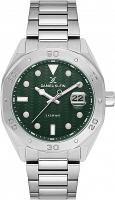 Мужские наручные часы Daniel Klein Premium 14076-2. Точный кварцевый механизм с аналоговой индикацией. В отличие от механических часов, не требуют завода и работают от батареи, показывая отклонение всего несколько секунд в месяц. На стрелки и отметки нанесен светонакопительный состав, благодаря этому считывать информацию с циферблата возможно и в темноте. Браслет из нержавеющей стали обладает высокой прочностью и износостойкостью, обеспечивая долговечность даже при активной эксплуатации. Материал устойчив к коррозии и сохраняет свой внешний вид надолго. Корпус изготовлен из высококачественной часовой латуни с высокими антикоррозийными свойствами. Прочное, устойчивое к царапинам минеральное стекло защищает часы от повреждений. Часы являются водонепроницаемыми до 5 Бар. Цвет корпуса: Серебристый. Цвет циферблата: Зеленый. Высота (с ушками): 45 мм. Толщина: 14 мм. Гарантия: 1 год.