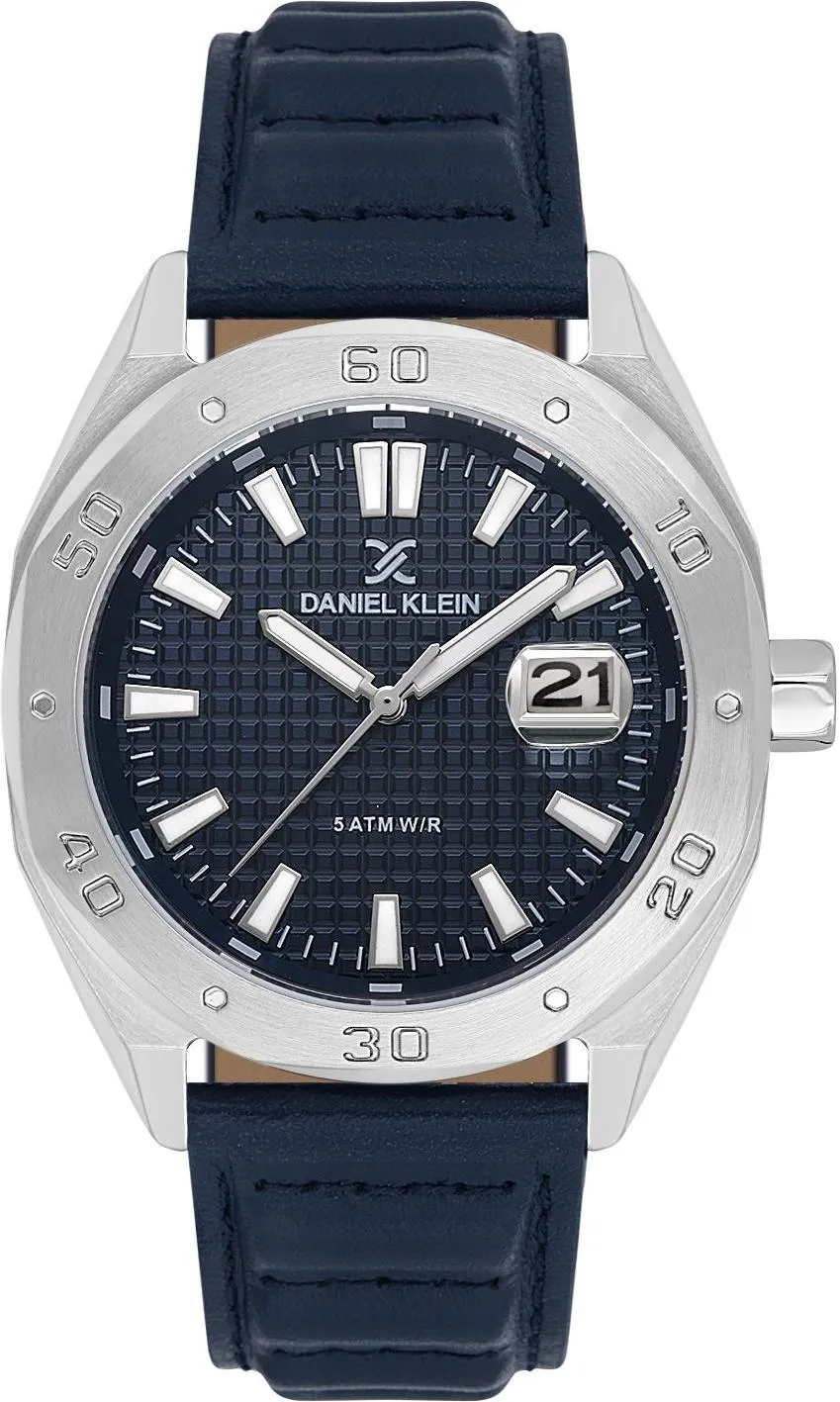 Мужские наручные часы Daniel Klein Premium 14077-2. Точный кварцевый механизм с аналоговой индикацией. В отличие от механических часов, не требуют завода и работают от батареи, показывая отклонение всего несколько секунд в месяц. На стрелки и отметки нанесен светонакопительный состав, благодаря этому считывать информацию с циферблата возможно и в темноте. Ремешок изготовлен из кожи. Гибкость такого ремешка позволяет точно регулировать посадку часов на руке. Корпус изготовлен из высококачественной часовой латуни с высокими антикоррозийными свойствами. Прочное, устойчивое к царапинам минеральное стекло защищает часы от повреждений. Часы являются водонепроницаемыми до 5 Бар. Цвет корпуса: Серебристый. Цвет циферблата: Синий. Высота (с ушками): 44 мм. Толщина: 12 мм. Гарантия: 1 год.