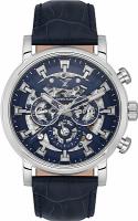 Мужские наручные часы Daniel Klein Skeleton 13850-2. Механические с ручным подзаводом. Ремешок изготовлен из кожи. После настройки автоматический календарь всегда отображает точную дату. Отображение времени возможно в 12-часовом или 24-часовом формате. Латунный браслет. Прочное, устойчивое к царапинам минеральное стекло защищает часы от повреждений. На циферблате отображается текущее число месяца и день недели. Часы являются водонепроницаемыми до 5 Бар. Цвет циферблата: Серебристый. Цвет корпуса: Синий. Цвет корпуса: Серебристый. На стрелки и отметки нанесен светонакопительный состав, благодаря этому считывать информацию с циферблата возможно и в темноте. Толщина: 10 мм. Гарантия: 1 год.