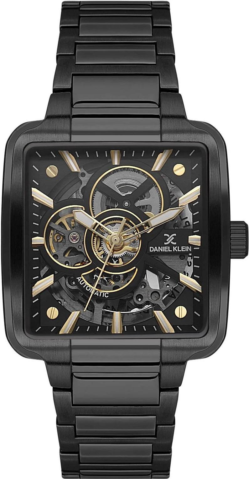 Мужские наручные часы Daniel Klein Skeleton 14279-5. Механические с автоподзаводом. Пружина механизма заводится автоматически благодаря естественным движениям владельца в процессе ежедневной носки часов. Браслет из нержавеющей стали обладает высокой прочностью и износостойкостью, обеспечивая долговечность даже при активной эксплуатации. Материал устойчив к коррозии и сохраняет свой внешний вид надолго. Корпус изготовлен из высококачественной часовой латуни с высокими антикоррозийными свойствами. Прочное, устойчивое к царапинам минеральное стекло защищает часы от повреждений. Часы являются водонепроницаемыми до 3 Бар. Цвет корпуса: Черный. Цвет циферблата: Черный. Высота (с ушками): 39 мм. Гарантия: 1 год.