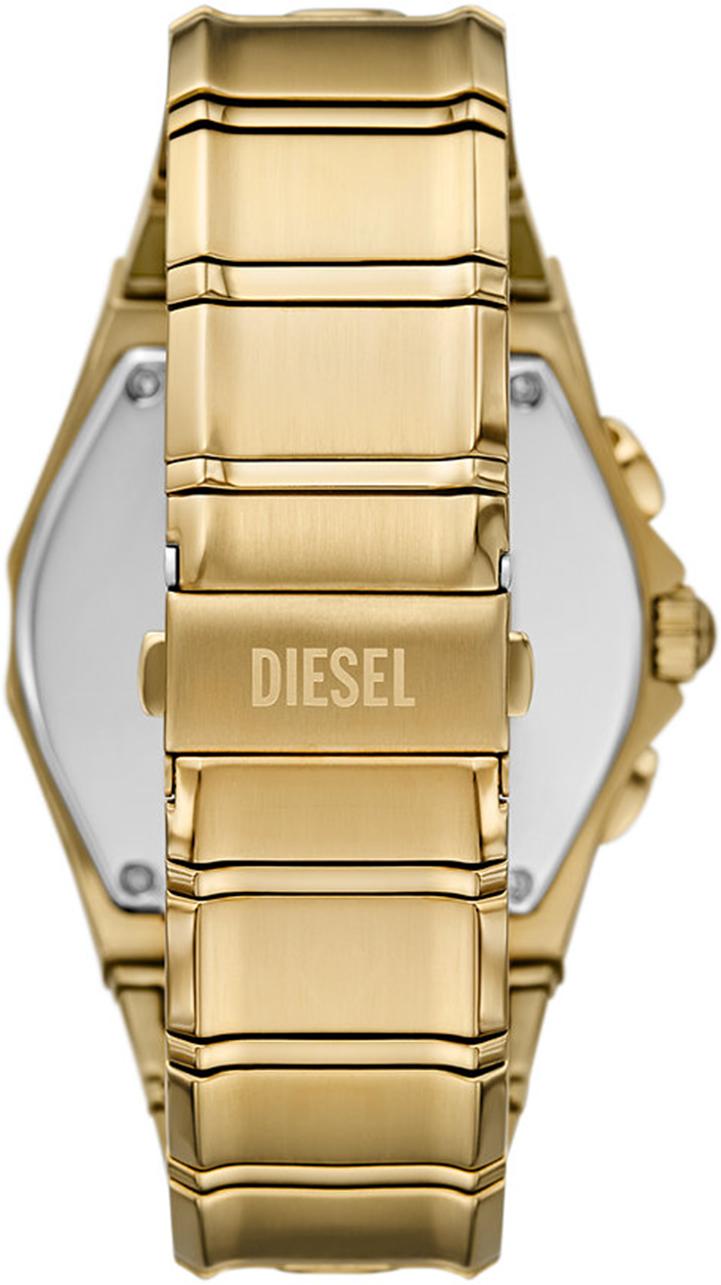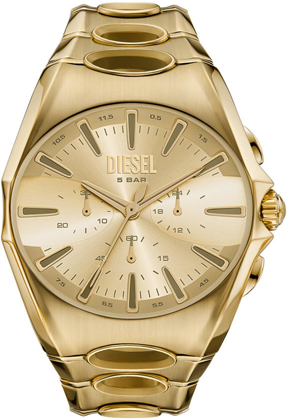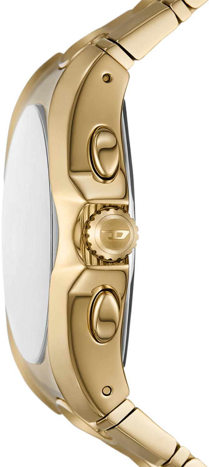 Мужские наручные часы Diesel D-Curve DZ4695. Точный кварцевый механизм с аналоговой индикацией. В отличие от механических часов, не требуют завода и работают от батареи, показывая отклонение всего несколько секунд в месяц. Браслет из нержавеющей стали обладает высокой прочностью и износостойкостью, обеспечивая долговечность даже при активной эксплуатации. Материал устойчив к коррозии и сохраняет свой внешний вид надолго. Функция хронографа. Корпус изготовлен из высококачественной нержавеющей стали 316L с высокими антикоррозийными свойствами. Прочное, устойчивое к царапинам минеральное стекло защищает часы от повреждений. Часы являются водонепроницаемыми до 5 Бар. Цвет корпуса: Желтое золото. Цвет циферблата: Золотистый. Толщина: 12 мм. Гарантия: 2 года.