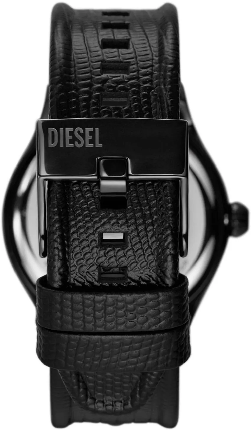 Мужские наручные часы Diesel Vert DZ2193. Точный кварцевый механизм с аналоговой индикацией. Корпус изготовлен из высококачественной нержавеющей стали 316L с высокими антикоррозийными свойствами. На стрелки и отметки нанесен светонакопительный состав, благодаря этому считывать информацию с циферблата возможно и в темноте. Ремешок изготовлен из кожи. Прочное, устойчивое к царапинам минеральное стекло защищает часы от повреждений. Часы являются водонепроницаемыми до 5 Бар. Цвет корпуса: Черный. Цвет циферблата: Черный. Ширина (с заводной головкой): 44мм. Толщина: 12мм. Гарантия: 2 года.