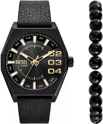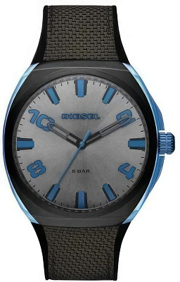 Это красивые часы Diesel Fastbak сделаны из черной ионизированной стали и оснащены кварцевым механизмом. Выполнены на синим кожаным ремешком и имеет серый циферблат.