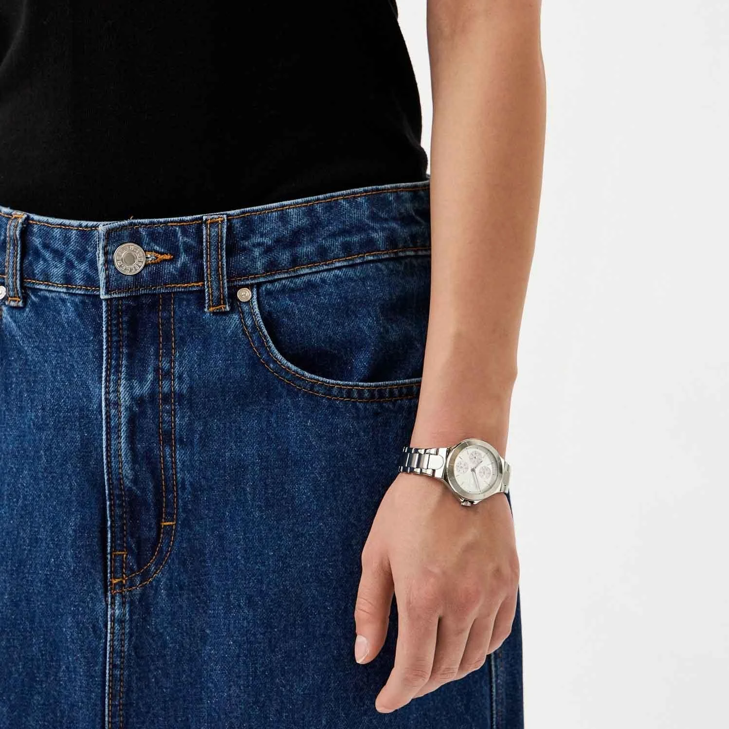 Стильные женские часы Chambers с круглым стальным корпусом и надежным стальным браслетом. Модель оснащена практичной индикацией даты и дня недели на отдельных циферблатах, а время отображается в 12-ти и 24-часовом форматах. Лаконичный дизайн подчеркивают штриховые метки и рифленая заводная головка с защитой.