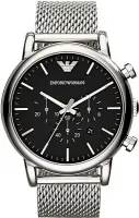 Привлекательные мужские часы Emporio Armani имеют корпус из нержавеющей стали и оснащены кварцевым механизмом хронографа. Они крепятся на серебрянном металлическом браслете и имеет черный циферблат. Часы также имеют функцию даты.