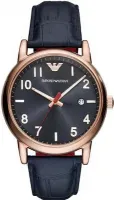 Мужские наручные часы Emporio Armani Classics AR11135. Точный кварцевый механизм с аналоговой индикацией. Корпус изготовлен из высококачественной нержавеющей стали 316L с высокими антикоррозийными свойствами. На стрелки и отметки нанесен светонакопительный состав, благодаря этому считывать информацию с циферблата возможно и в темноте. На циферблате отображается текущее число месяца. Ремешок изготовлен из кожи. Прочное, устойчивое к царапинам минеральное стекло защищает часы от повреждений. Часы являются водонепроницаемыми до 5 Бар. Цвет корпуса: Розовое золото. Цвет циферблата: Фиолетовый. Ширина (с заводной головкой): 43мм. Толщина: 11мм. Гарантия: 2 года.
