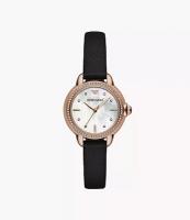 Женские наручные часы Emporio Armani Classics AR11598. Точный кварцевый механизмРемешок изготовлен из кожи. Корпус изготовлен из высококачественной нержавеющей стали 316L с высокими антикоррозийными свойствами. Прочное, устойчивое к царапинам минеральное стекло защищает часы от повреждений. Часы являются водонепроницаемыми до 3 Бар. Цвет циферблата: Черный. Цвет циферблата: Розовое золото. Цвет корпуса: Белый. Цвет корпуса: Перламутровый. Толщина: 9 мм. Гарантия: 2 года.