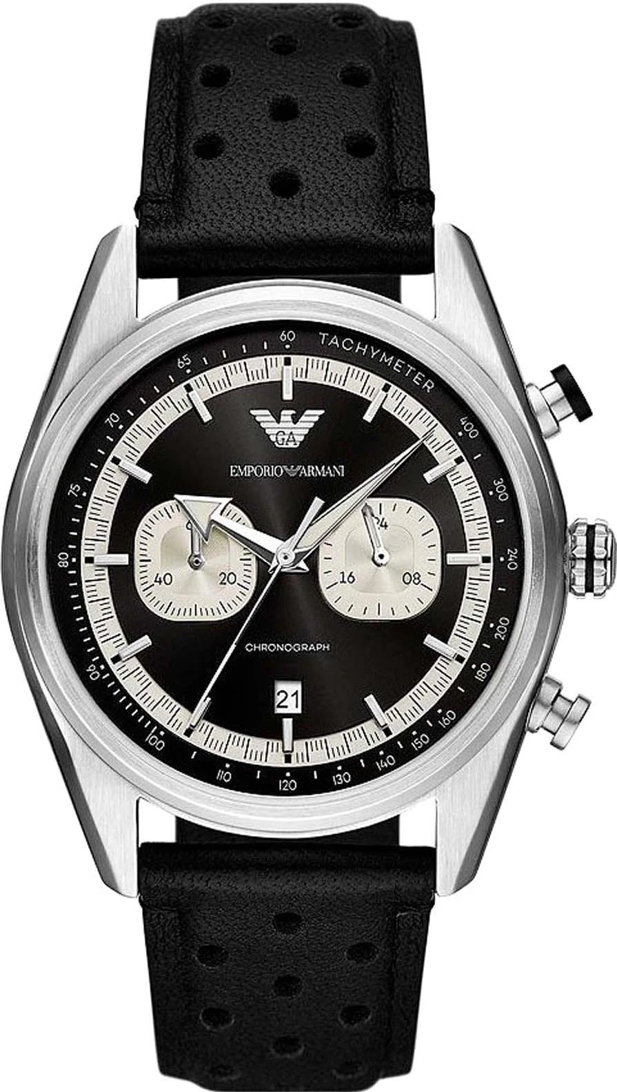 Часы оснащены кварцевым механизмом и функцией хронографа с секундомером. Корпус из нержавеющей стали диаметром 42 мм и толщиной 11 мм защищен минеральным стеклом. Модель имеет водонепроницаемость 5 атмосфер (WR50). Циферблат включает тахиметрическую шкалу, индикацию даты в положении 6 часов и люминесцентное покрытие стрелок. Комплектация включает кожаный ремешок со стандартной застежкой.