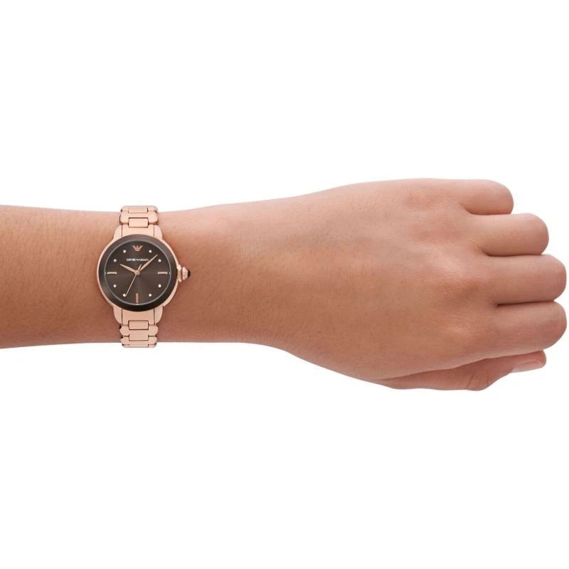 Эти стильные часы станут изысканным дополнением вашего образа. Модель с корпусом диаметром 32 мм и цельным браслетом из нержавеющей стали представлена в благородном оттенке розового золота. Круглый циферблат теплого коричневого цвета гармонично сочетается с металлом, создавая сбалансированный эстетичный вид.