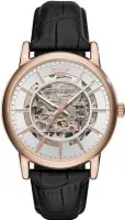 Мужские часы-скелетон сочетают традиционный и современный стили. Круглый корпус из нерж. стали с золотым покрытием, кожаный ремешок. Минеральное стекло, прозрачная задняя крышка. Водостойкость 3 АТМ. Механизм с автоподзаводом.