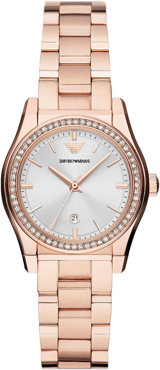 Женские наручные часы Emporio Armani Rosa AR11558. Точный кварцевый механизм с аналоговой индикацией. Браслет из нержавеющей стали. Браслет из нержавеющей стали. Прочное, устойчивое к царапинам минеральное стекло защищает часы от повреждений. На циферблате отображается текущее число месяца. Часы являются водонепроницаемыми до 5 Бар. Цвет циферблата: Розовое золото. Цвет корпуса: Серебристый. Толщина: 9 мм. Гарантия: 2 года.