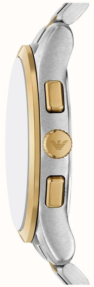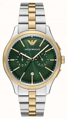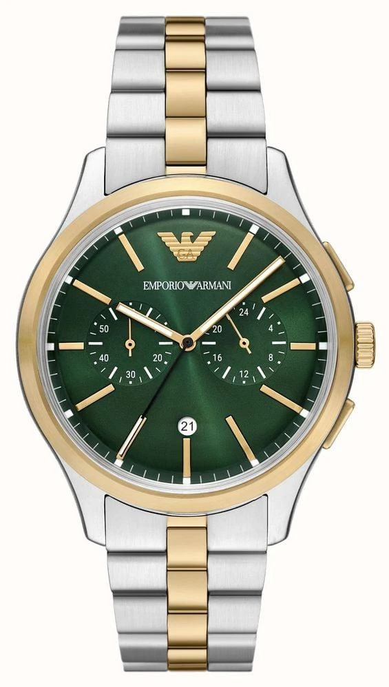 Мужские наручные часы Emporio Armani Ruggero AR11692. Точный кварцевый механизм с аналоговой индикацией. В отличие от механических часов, не требуют завода и работают от батареи, показывая отклонение всего несколько секунд в месяц. Браслет из нержавеющей стали обладает высокой прочностью и износостойкостью, обеспечивая долговечность даже при активной эксплуатации. Материал устойчив к коррозии и сохраняет свой внешний вид надолго. Функция хронографа. Отображение времени возможно в 12-часовом или 24-часовом формате. Корпус изготовлен из высококачественной нержавеющей стали 316L с высокими антикоррозийными свойствами. Прочное, устойчивое к царапинам минеральное стекло защищает часы от повреждений. Часы являются водонепроницаемыми до 5 Бар. Цвет корпуса: Серебристый. Цвет корпуса: Желтое золото. Цвет циферблата: Зеленый. Гарантия: 2 года.