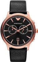 Мужские наручные часы Emporio Armani Sports AR1792. Точный кварцевый механизм с аналоговой индикацией. Корпус изготовлен из высококачественной нержавеющей стали 316L с высокими антикоррозийными свойствами. На циферблате отображается текущее число месяца. Функция хронографа. Ремешок изготовлен из кожи. Прочное, устойчивое к царапинам минеральное стекло защищает часы от повреждений. Часы являются водонепроницаемыми до 3 Бар. Цвет корпуса: Розовое золото. Цвет циферблата: Черный. Ширина (с заводной головкой): 43мм. Толщина: 11мм. Гарантия: 2 года.