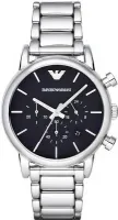 Мужские наручные часы Emporio Armani Sports AR1853. Точный кварцевый механизм с аналоговой индикацией. Корпус изготовлен из высококачественной нержавеющей стали 316L с высокими антикоррозийными свойствами. На стрелки и отметки нанесен светонакопительный состав, благодаря этому считывать информацию с циферблата возможно и в темноте. На циферблате отображается текущее число месяца. Функция хронографа. Браслет из нержавеющей стали. Прочное, устойчивое к царапинам минеральное стекло защищает часы от повреждений. Часы являются водонепроницаемыми до 5 Бар. Цвет корпуса: Серебристый. Цвет циферблата: Черный. Ширина (с заводной головкой): 41мм. Толщина: 12мм. Гарантия: 2 года.