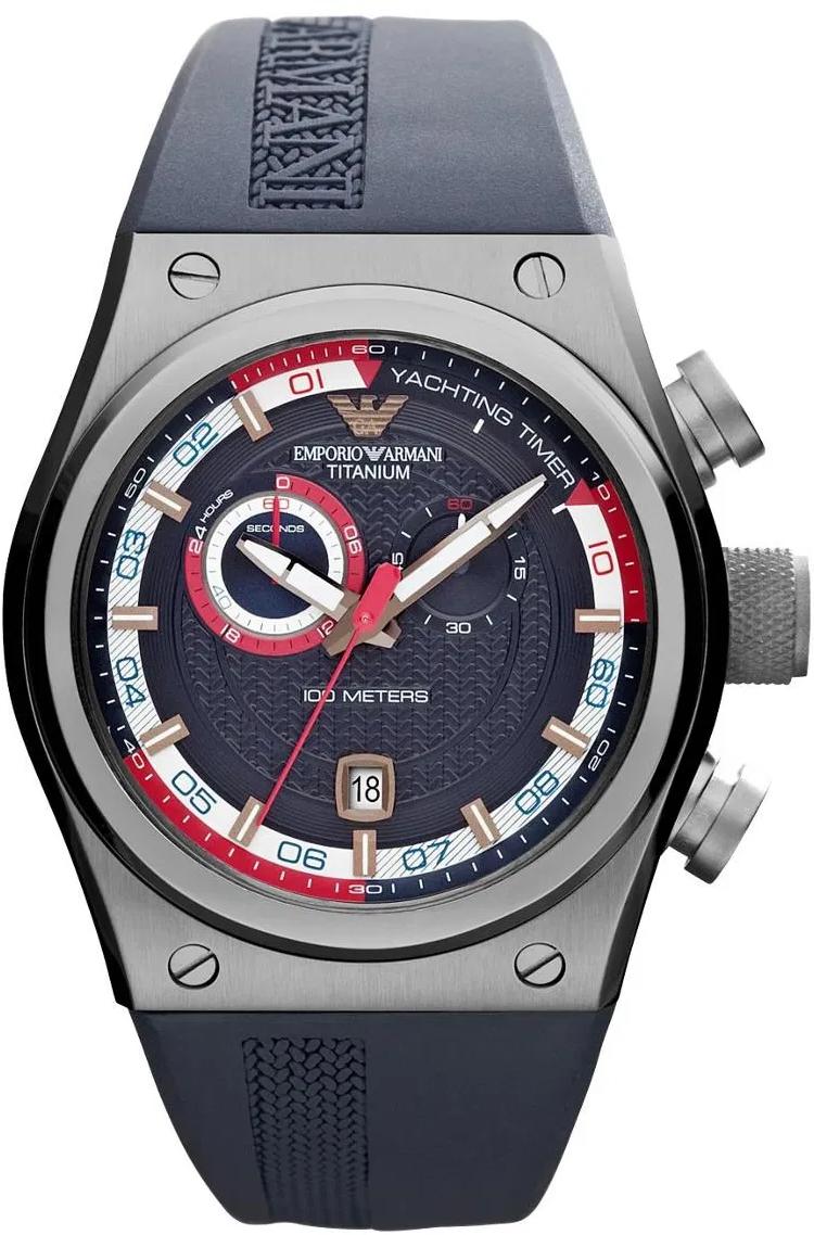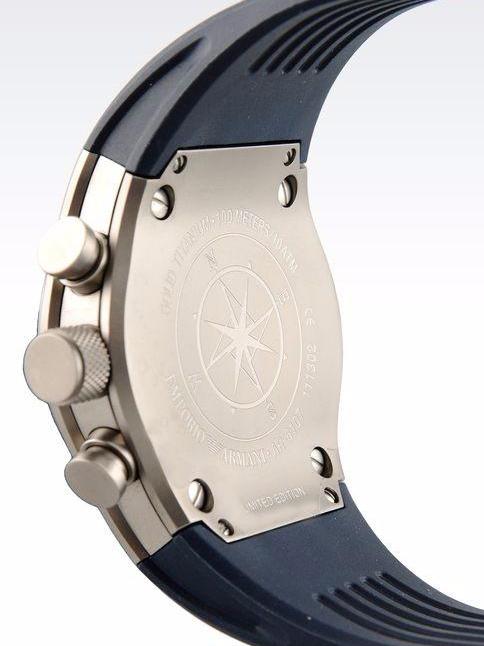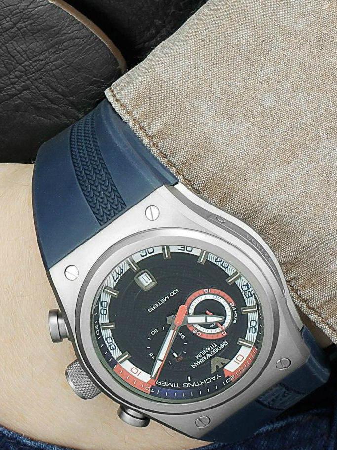Оригинальный дизайн мужских часов, корпус титановый, точный кварцевый механизм хронографа. Ремешок из натурального каучука. Водозащита до 10 АТМ.