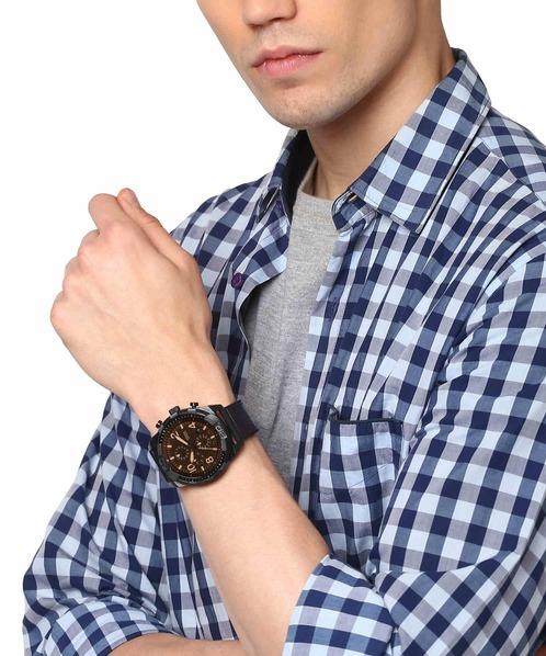 Точный кварцевый механизм. • Корпус: натуральная кожа • Цвет корпуса: черный • Ремень/браслет: сталь • Цвет браслета: коричневый • Цвет циферблата: черный • Водозащита: 5ATM • Размер корпуса (мм): 50мм • Ширина браслета (мм): 24мм