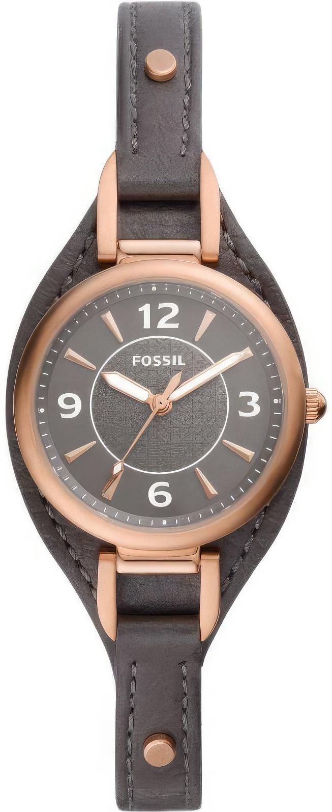 Женские наручные часы Fossil Carlie ES5212. Точный кварцевый механизм с аналоговой индикацией. Ремешок изготовлен из кожи. Браслет из нержавеющей стали. Прочное, устойчивое к царапинам минеральное стекло защищает часы от повреждений. Часы являются водонепроницаемыми до 5 Бар. Цвет циферблата: Розовое золото. Цвет корпуса: Серый. На стрелки и отметки нанесен светонакопительный состав, благодаря этому считывать информацию с циферблата возможно и в темноте. Толщина: 7 мм. Гарантия: 2 года.