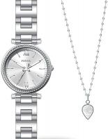 Женские наручные часы Fossil Carlie ES5250SET. Точный кварцевый механизм с аналоговой индикацией. Корпус изготовлен из высококачественной нержавеющей стали 316L с высокими антикоррозийными свойствами. На стрелки и отметки нанесен светонакопительный состав, благодаря этому считывать информацию с циферблата возможно и в темноте. Браслет из нержавеющей стали. Прочное, устойчивое к царапинам минеральное стекло защищает часы от повреждений. Часы являются водонепроницаемыми до 5 Бар. Цвет корпуса: Серебристый. Цвет циферблата: Серебристый. Ширина (с заводной головкой): 28мм. Толщина: 7мм. Гарантия: 2 года.