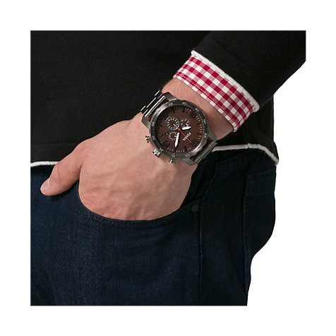 Мужские наручные часы с хронографом и окошком даты в стальном корпусе и браслетом из нержавеющей стали.