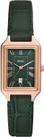 Женские наручные часы Fossil Raquel ES5366. Точный кварцевый механизм с аналоговой индикацией. Ремешок изготовлен из кожи. Браслет из нержавеющей стали. Прочное, устойчивое к царапинам минеральное стекло защищает часы от повреждений. На циферблате отображается текущее число месяца. Часы являются водонепроницаемыми до 5 Бар. Цвет циферблата: Зеленый. Цвет циферблата: Желтое золото. Цвет корпуса: Зеленый. Толщина: 7 мм. Гарантия: 2 года.