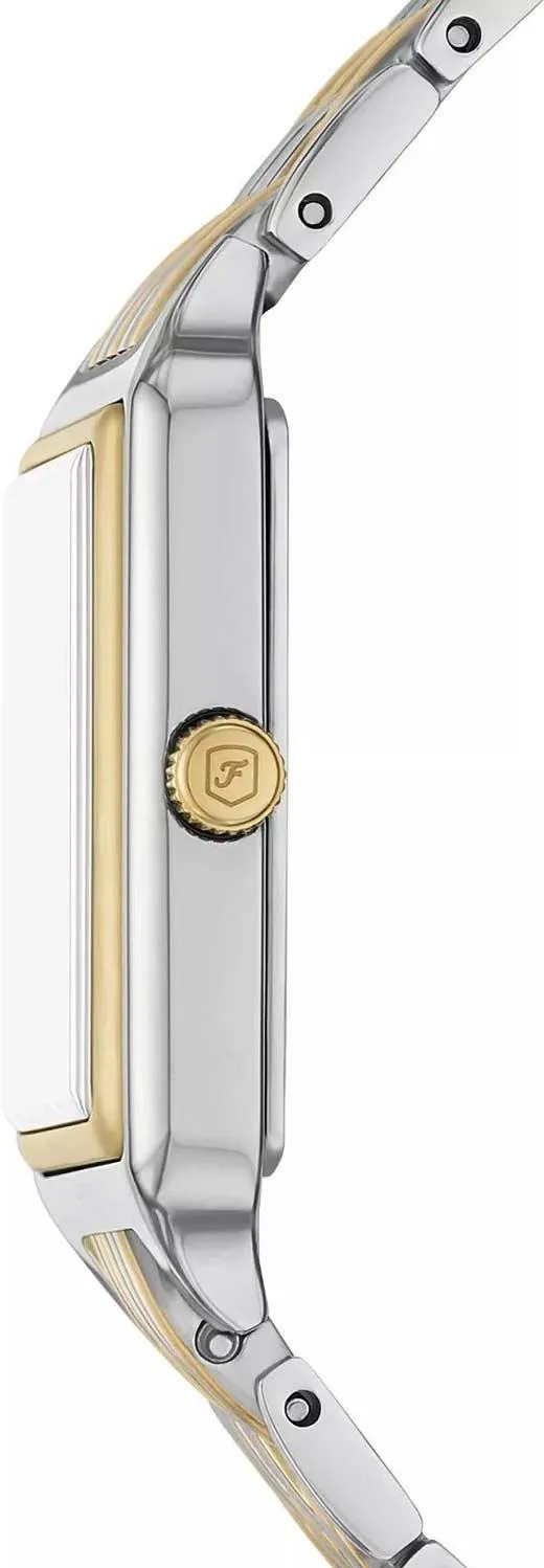 Женские наручные часы с прямоугольным стальным корпусом в двухтонном исполнении сочетают в себе элегантность и функциональность. Модель с компактными габаритами (ширина корпуса 23 мм) оснащена серым циферблатом с классическими римскими цифрами и окошком даты в положении 6 часов. Надежный кварцевый механизм обеспечивает точность хода, а прочное минеральное стекло защищает от царапин. Стальной браслет-цепь шириной 12 мм с частичным IP-покрытием и раскладывающейся застежкой гарантирует комфортную посадку (длина 175 мм). Благодаря водонепроницаемости 5 ATM (50 метров) часы устойчивы к брызгам, дождю и кратковременному погружению в воду. Изысканный дизайн делает этот аксессуар универсальным выбором для делового стиля и особых мероприятий.