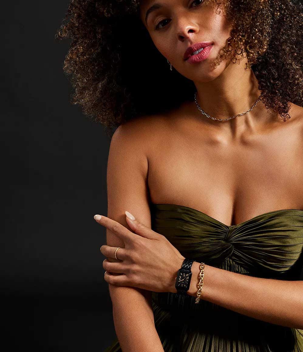 Женские наручные часы с прямоугольным корпусом в стильном IP-покрытии сочетают в себе элегантность и функциональность. Модель с черным циферблатом и классическими римскими цифрами оснащена удобным окошком даты в положении 6 часов. Надежный кварцевый механизм обеспечивает точность хода, а прочное минеральное стекло защищает циферблат от повреждений. Стальной браслет с IP-покрытием и раскладывающейся застежкой гарантирует комфортную посадку на запястье. Благодаря водонепроницаемости 5 ATM (50 метров) часы устойчивы к брызгам, дождю и кратковременному погружению в воду, что делает их практичным аксессуаром для повседневной носки. Сдержанный дизайн с четкой геометрией линий делает эту модель универсальным выбором для делового стиля и особых мероприятий.