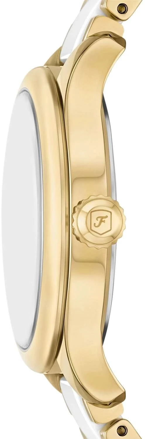 Женские кварцевые часы Fossil — это элегантный аксессуар, сочетающий стиль и надежность. Модель CE1131 выполнена в круглом корпусе диаметром 38 мм из нержавеющей стали с покрытием цвета желтого золота. Циферблат белого цвета оформлен индексами и стрелками. Окошко даты расположено в положении 6 часов. Циферблат защищен минеральным стеклом. Часы оснащены браслетом из керамики и стали с покрытием. Водонепроницаемость 50 метров (5 АТМ/bar): выдерживают мытье рук, попадание крупных капель. Идеальный выбор для тех, кто ценит качество и дизайн.