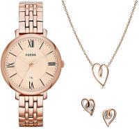 Женские наручные часы Fossil Jacqueline ES5252SET. Точный кварцевый механизм с аналоговой индикацией. Браслет из нержавеющей стали. Браслет из нержавеющей стали. Прочное, устойчивое к царапинам минеральное стекло защищает часы от повреждений. На циферблате отображается текущее число месяца. Часы являются водонепроницаемыми до 5 Бар. Цвет циферблата: Розовое золото. Цвет корпуса: Золотистый. Толщина: 8 мм. Гарантия: 2 года.